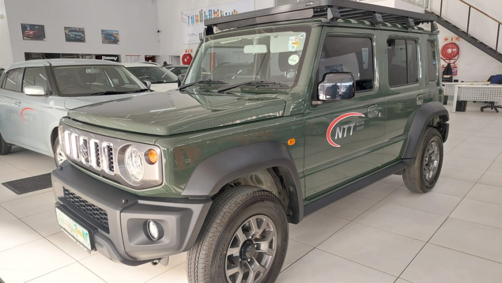 Air Conditioner, Alarm Immobiliser, Alloy Wheels, Auto lights, Bluetooth, Carpet Set, Cartrack, Central Locking, Electric Windows, Extended service plan, Metallic Paint, Power Steering, Remainder of Service Plan, Remainder of Warranty, Reverse camera, Satellite Navigation, Tow Bar, Window tint. Genuine off-road capability, , Despite its compact size, the Jimny features a true ladder-frame architecture and solid axles (front rear), which is rare in this class and gives it real off-road credentials. , , It has a high ground clearance ( 210 mm) which helps when tackling rough terrain or rural roads. , , The 4x4 system (called AllGrip Pro in some markets) with low range transfer gear gives it serious off-road chops excellent for adventurous buyers. , , Local review After the frustration of its on-tar performance, the 2025 Jimny auto 5-door well and truly comes good in the wild. Not one section of the off-road route posed a serious challenge. , The South African, , 2. Compact, manoeuvrable size, , Its small footprint means easier manoeuvring in tight city streets, parking in tight spots, and navigating narrow tracks or side-roads., , For example in South Africa the review mentions its footprint is ideal for narrow off-road tracks. , The South African, , That makes it appealing for buyers who want a dual-purpose vehicle (city off-road) or something unusual., , 3. Good for everyday use weekend adventure, , Engine 1.5 L petrol, producing about 75 kW and 130 Nm of torque. , , , Boot cargo capacity for its class is decent in the 5-door version you ll see figures like 211 litres boot capacity (fold seats down gives more). , , Warranty after sales For South Africa, the model comes with 5 years unlimited km warranty (or at least long warranty) according to spec sheets., , 4. Distinctive styling strong brand character , , The Jimny stands out boxy, rugged, iconic styling. That counts for a lot in the market where many SUVs look similar., , That gives it appeal not just as a utility vehicle but also as a lifestyle statement purchase (think outdoor adventure image)., , The cool factor can be used when pitching You ll have a vehicle that gets noticed, that s equally at home in town and on a trail. , , 5. Strong value proposition in local market, , In South Africa the spec sheet shows good features on the GLX LED projector headlights, alloy wheels, smartphone connectivity (Apple CarPlay Android Auto) in some markets. , , , The dealer deals pages in South Africa highlight that the Jimny is promoted with features like All New 1.5 l Engine , Low Range Gear , Authentic Offroader . , , Towing capacity (braked) in some markets up to 1,300kg. , So for buyers wanting a genuine 4x4 at a moderate price, this could be pitched as maximum fun utility for the money .
